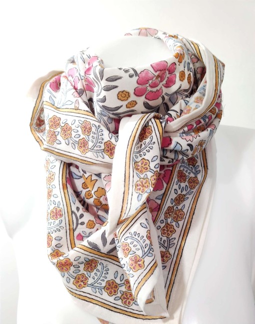 Foulard en coton imprimé à la main en Inde, très souple et doux.