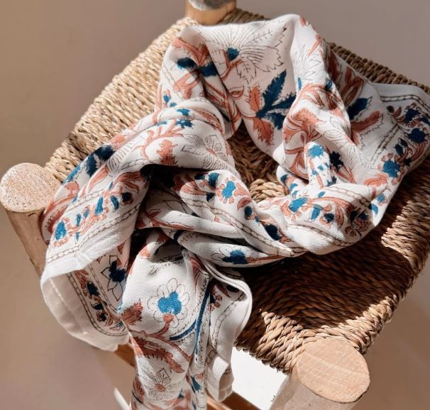 Foulard en coton imprimé à la main en Inde, très souple et doux.