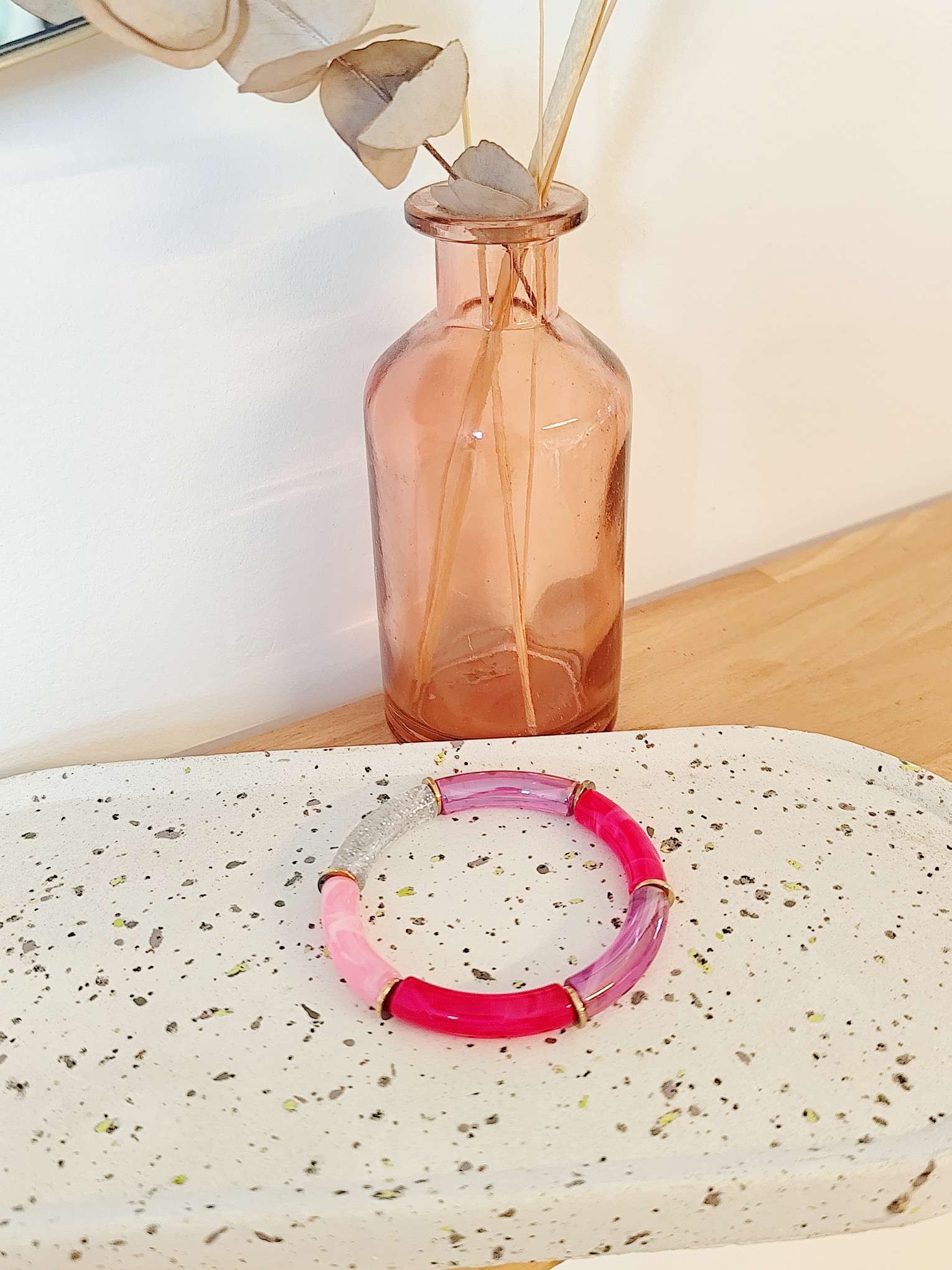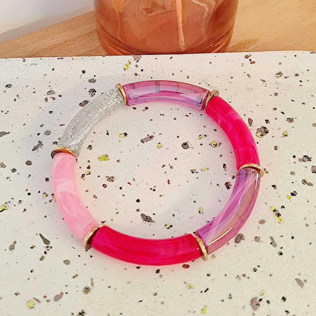 Bracelet en résine - rose fuchsia, rose pâle et doré - Un style audacieux et raffiné