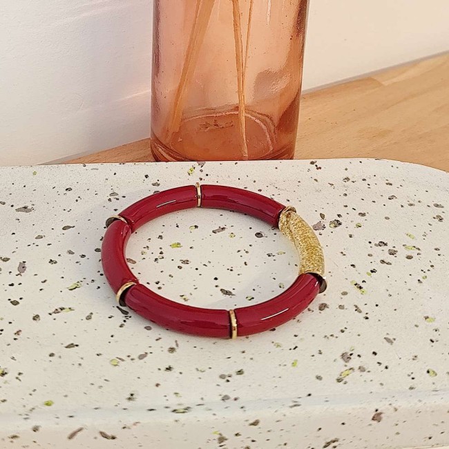 Bracelet en résine - Bordeaux et paillettes dorées - Un style audacieux et raffiné