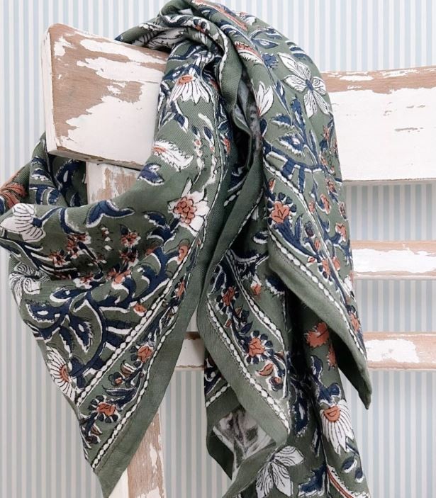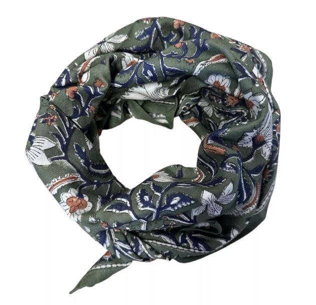 Foulard en coton imprimé à la main en Inde, très souple et doux.