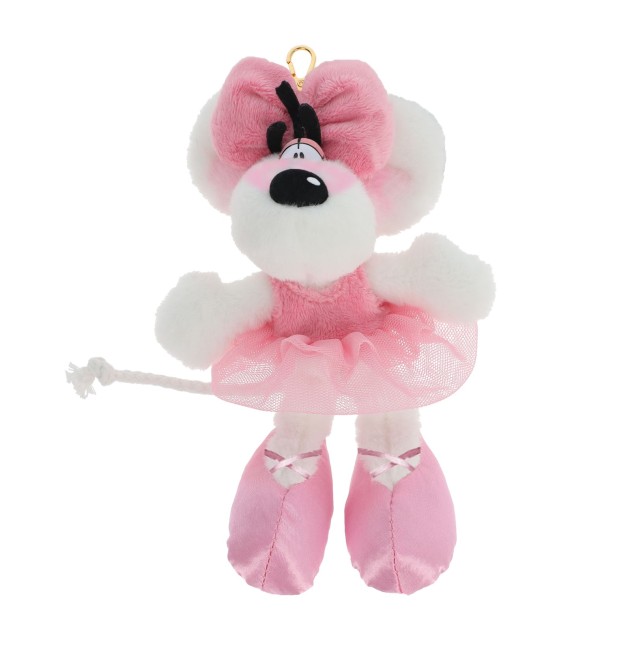 Avec sa robe rose poudré, son nœud assorti et ses grandes oreilles moelleuses, cette peluche incarne tout le charme de l’univers Diddl.