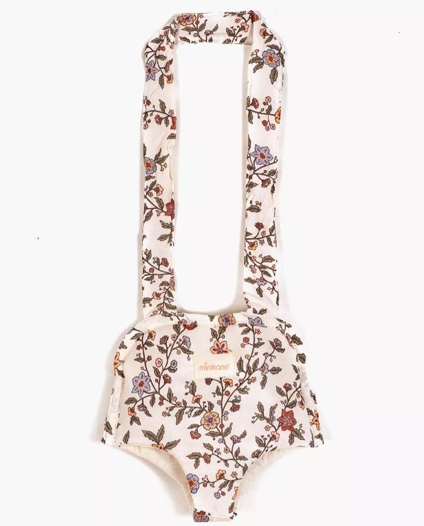 Le porte poupée Minikane écru et fleuri est un accessoire plein de poésie. Confectionné en France, il arbore de jolis motifs floraux délicats, parfaits pour les enfants rêveurs et les amateurs de style bohème.