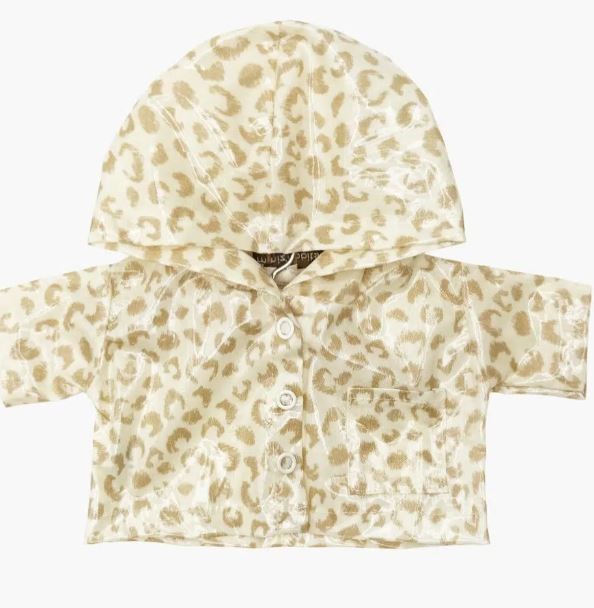 Retrouvez ici notre joli imperméable à capuche en coton induit imprimé léopard pour les poupées Minikane.