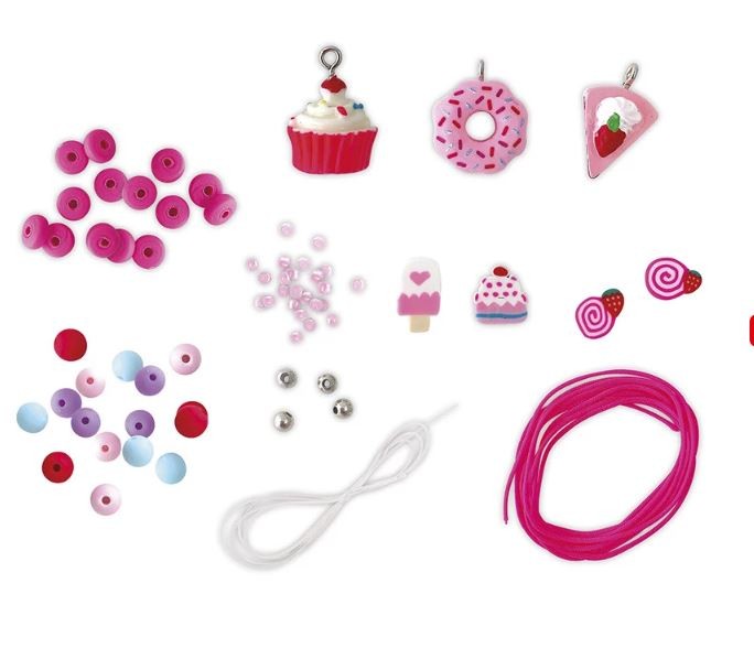 ✅ des perles fantaisie, des breloques en forme de bonbons et de cupcakes,