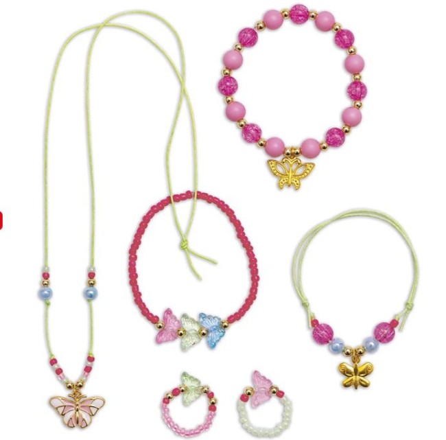 Ce joli coffret d’activités manuelles permet aux enfants dès 6 ans de réaliser de magnifiques bijoux sur le thème des papillons, aux couleurs tendres et scintillantes.