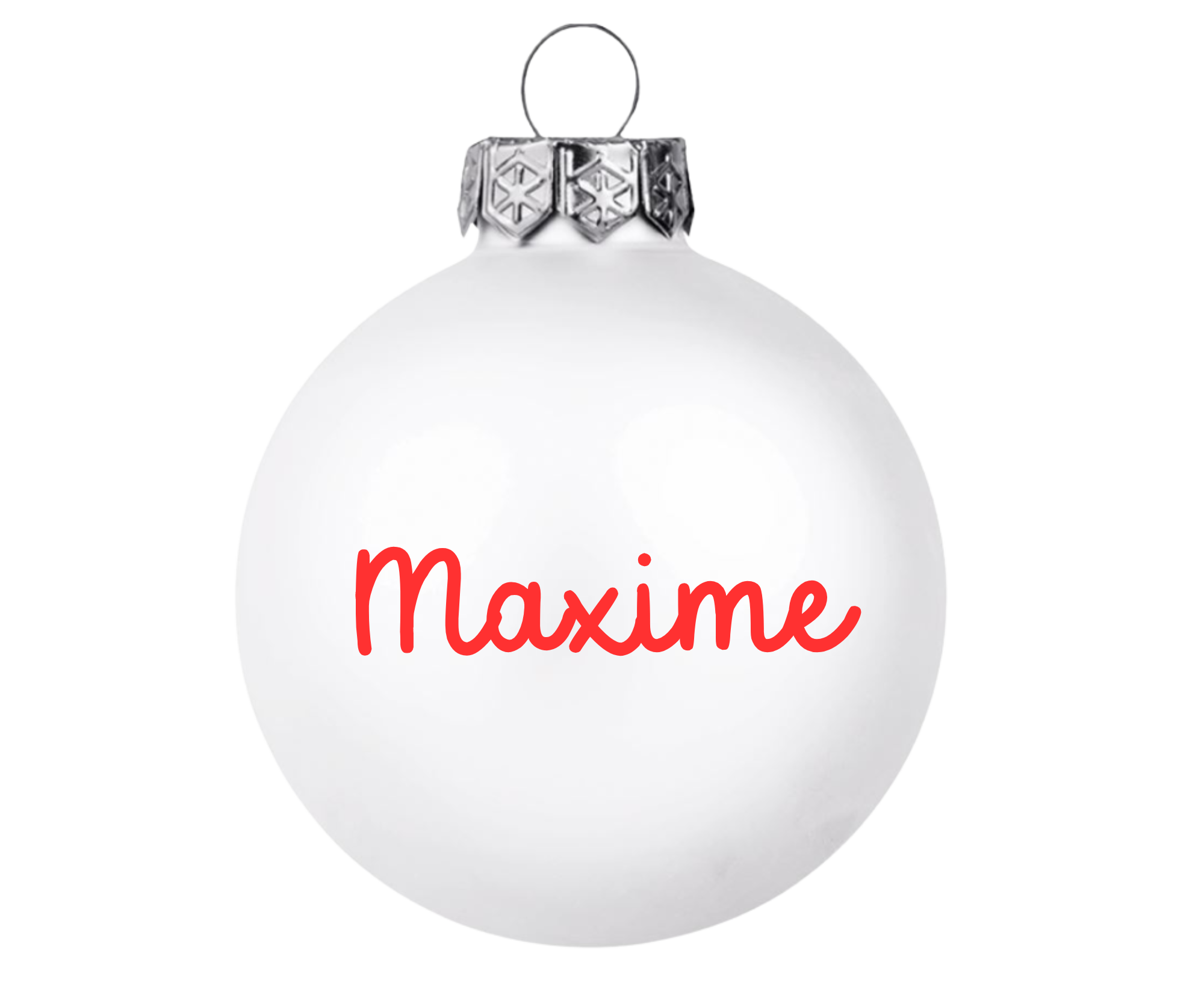 Boule de NOEL à personnaliser - Prénom - BLANC écriture rouge à paillettes