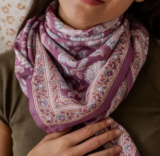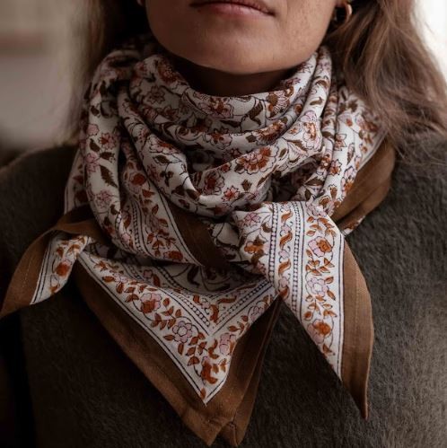 Les foulards block print de la marque Bindi Atelier se distinguent par leur fabrication artisanale et leur design unique.