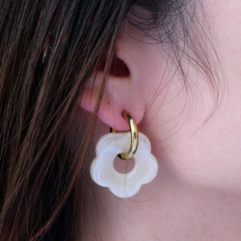 Boucles d'oreilles créoles grosses fleurs acétate - écru nacré