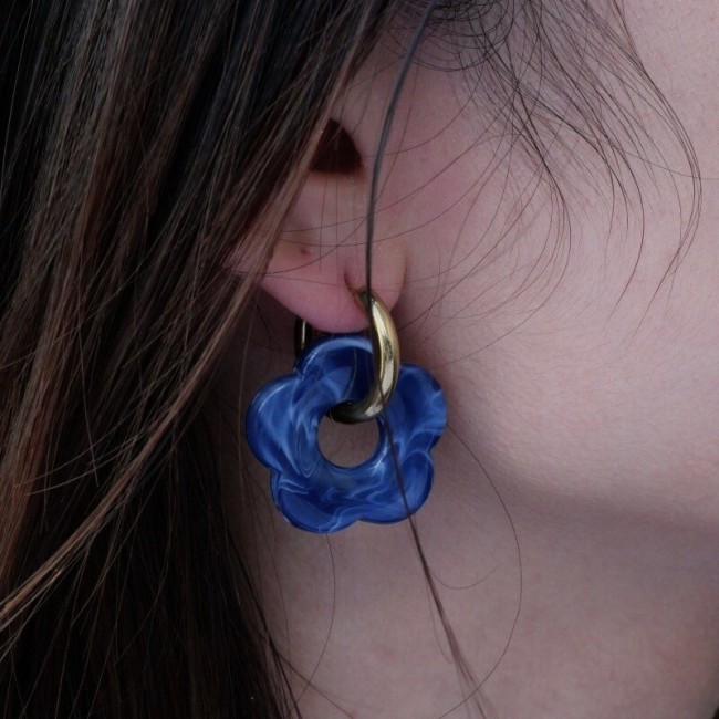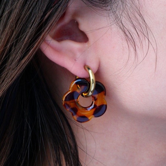 Boucles d'oreilles créoles grosses fleurs acétate - léopard