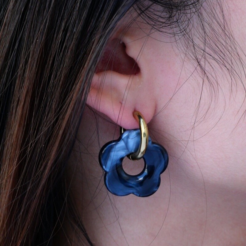 Boucles d'oreilles créoles grosses fleurs acétate - noir tie and dye