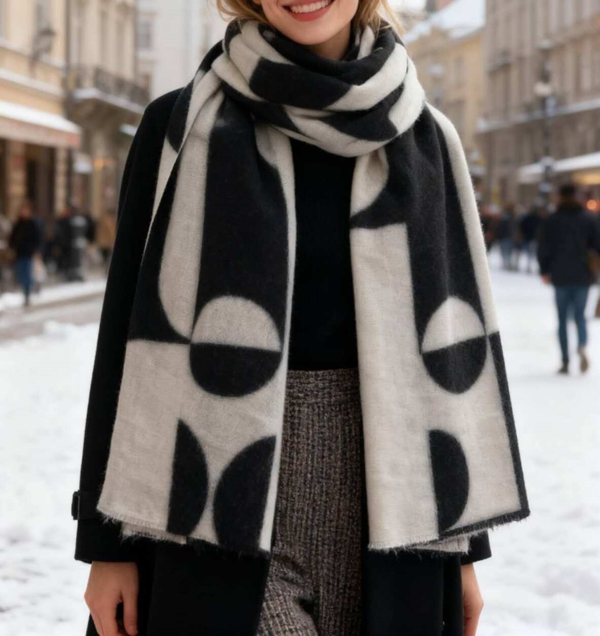 Découvrez notre écharpe toute douce dans des nuances noire et écru, un véritable cocon de chaleur pour cet automne-hiver.