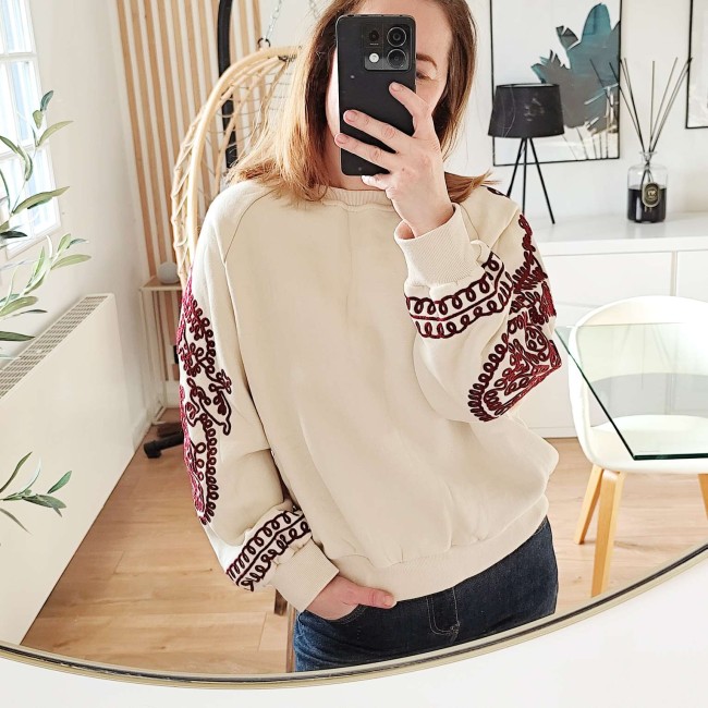 Sweat femme beige et bordeaux - Laura