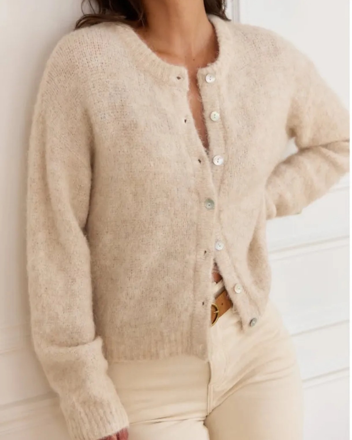 Gilet beige chiné Gisèle – Maille chaude à l’alpaga
