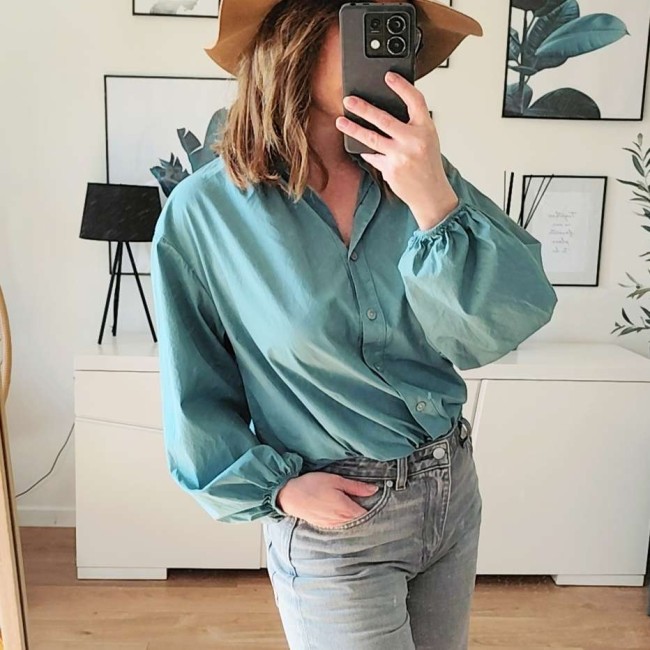Couleur : chemise bleu / vert céladon