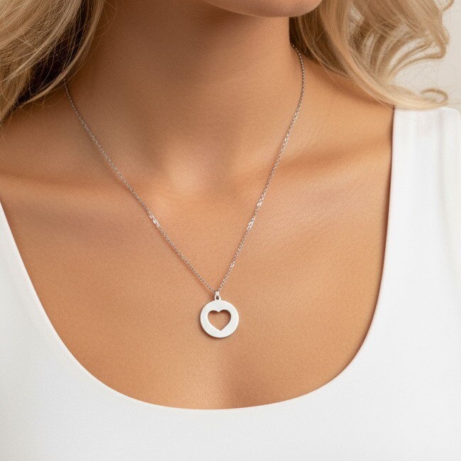 Un collier argenté fin avec médaille cœur découpé
