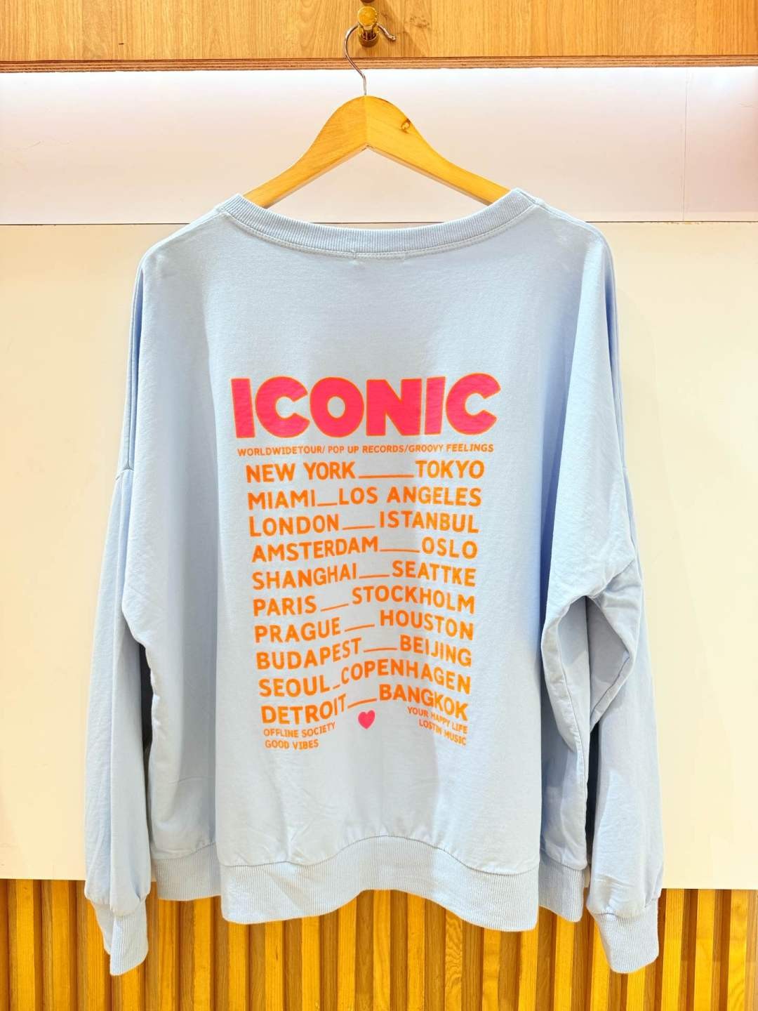 Avec son design moderne, ce sweat affiche une inscription ICONIC en orange fluo, signature forte et mode qui attire immédiatement le regard. Décliné en rose fuchsia, bleu ciel et beige, il s’adapte à tous les styles et apporte une touche lumineuse et actuelle à vos tenues du quotidien.