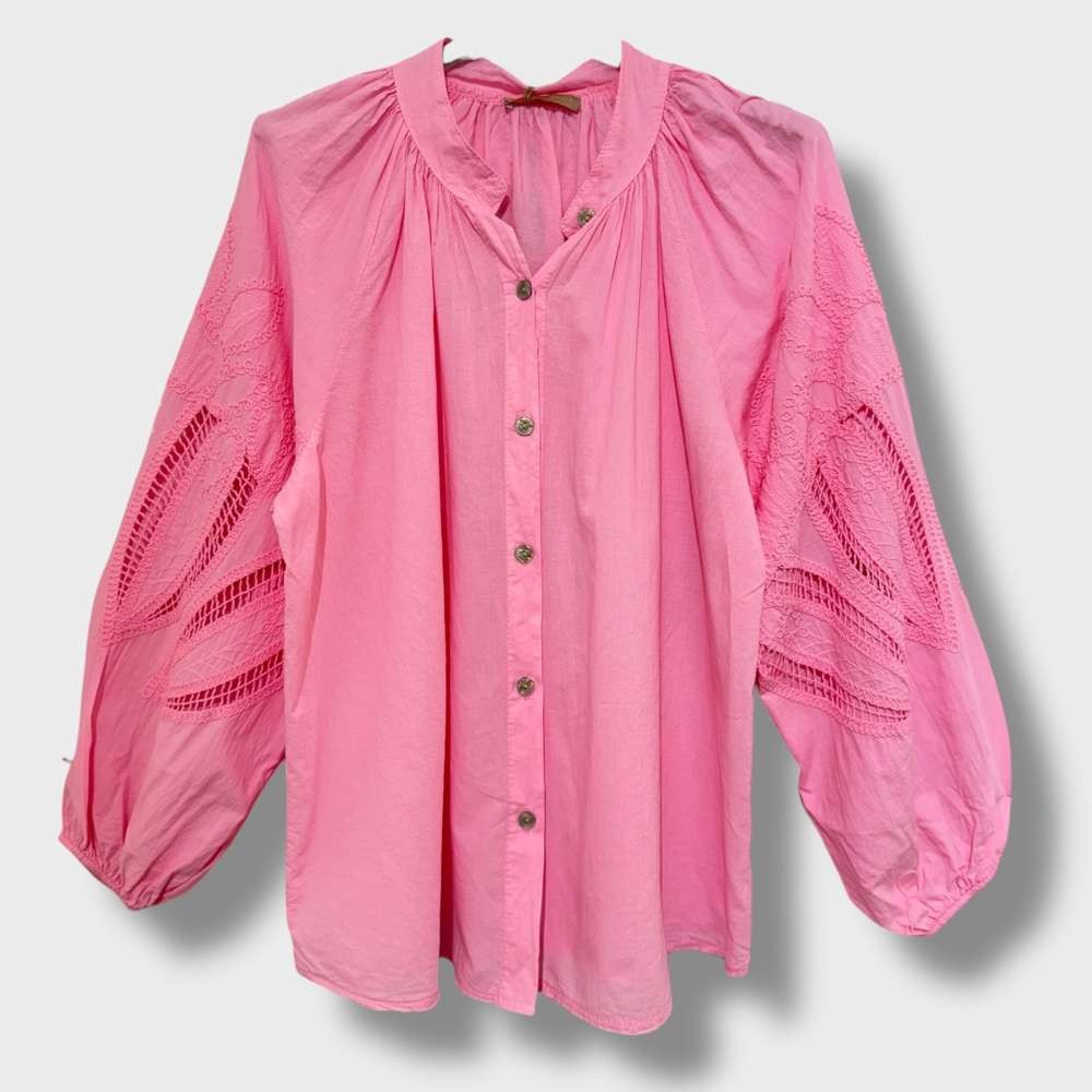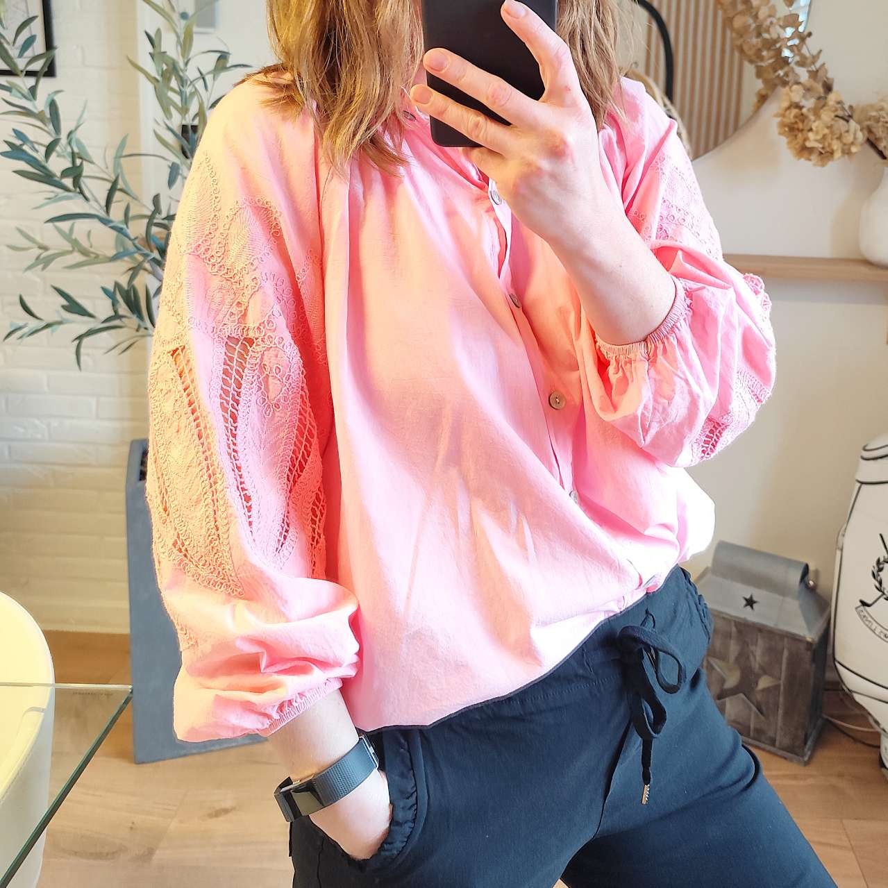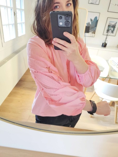 Cette blouse se porte aussi bien avec un jean clair qu’avec un pantalon blanc ou beige. Elle est idéale pour un look casual chic, bohème ou romantique.