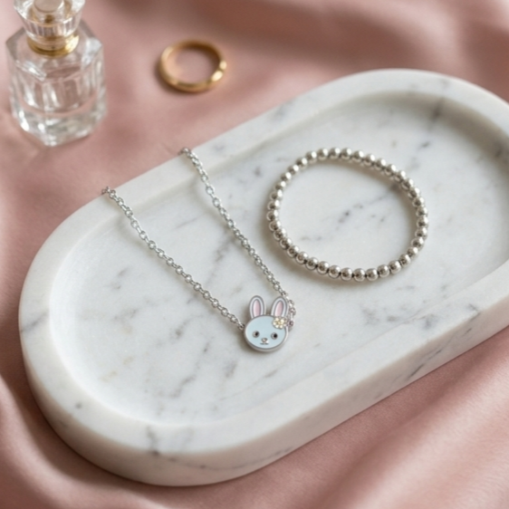 Ce joli bracelet pour enfant en acier inoxydable séduit par sa délicatesse et son adorable petit lapin suspendu à une fine chaînette.