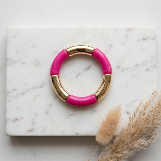 Bracelet élastique en perles tubulaire acrylique.