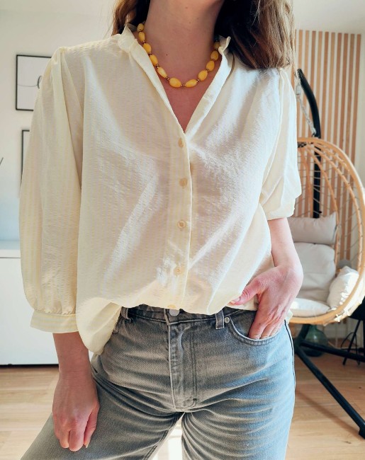 Blouse "Daphné" – rayures blanc & jaune pâle