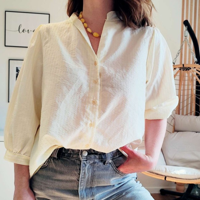 Facile à associer avec un jean, un short ou une jupe, la blouse Daphné est un incontournable de la saison printemps-été 2026.